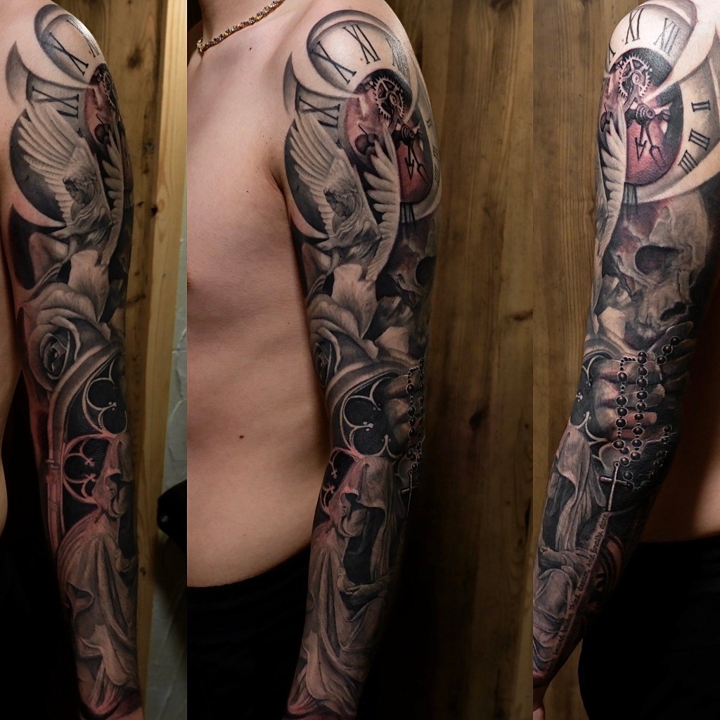 Black&Gray 日本で言う、洋彫りの作品ページになります。リアルな仕上がりを求めている方は是非ご覧ください。 フルスリーブ キジトラ猫 薔薇 ギリシャ彫刻 プレイングハンズ 般若 侍 チカーノガール ライオン 目の薔薇 チカーノガール プレイングハンズ蛇 蛇 キリスト 時計と薔薇 ゼウスと船 クチナシ 般若 ギリシャ兵 チカーノフルスリーブ 狼 ビーチ レンガと薔薇